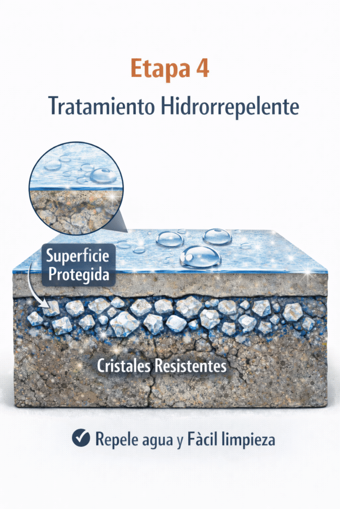4 . Se aplica un sellador, formando una barrera protectora sobre la superficie. Esto ayuda a mejorar la resistencia a manchas y facilita el mantenimiento.